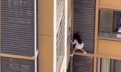 Thót tim cảnh người phụ nữ đu mình bên ngoài tầng 10 của một tòa chung cư, nghi bị bắt quả tang ngoại tình