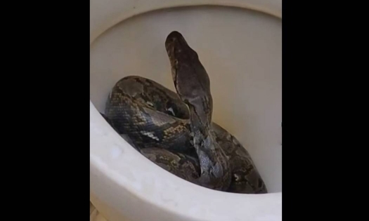 Vừa nhấc nắp bồn cầu, người đàn ông đã phải đứng tim khi đối mặt với một con trăn khổng lồ dài 4 mét đang ngóc cao đầu.